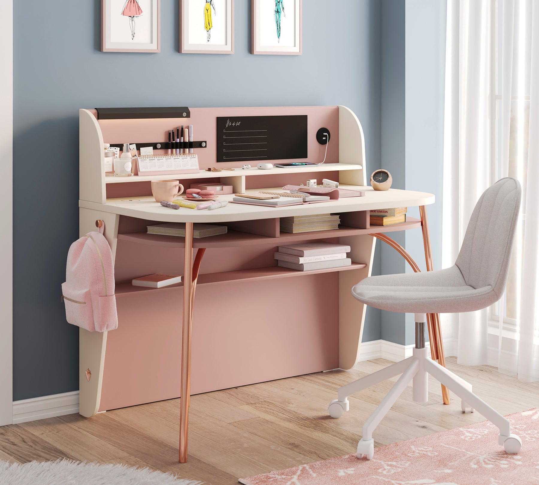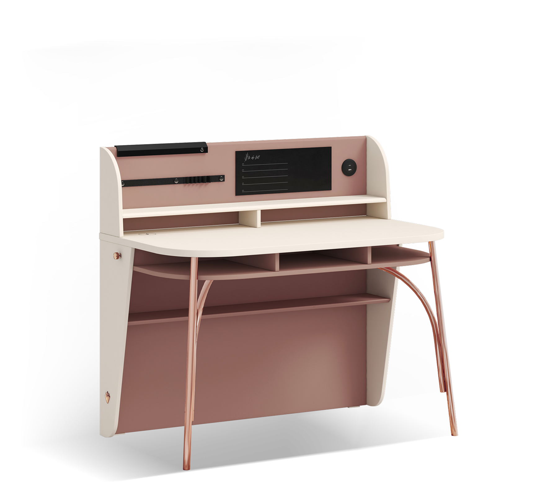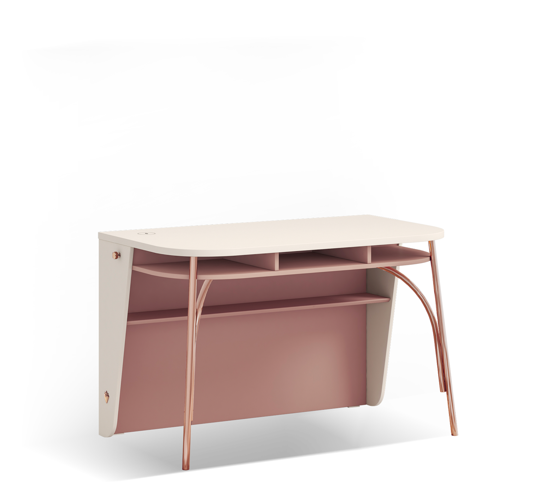 Estetski izgled pruža zahvaljujući kombinaciji boja Roze i Krem Vizon, dok metalne noge u rose gold završnoj obradi dodaju elegantan dodir prostoru. Ergonomične dimenzije omogućavaju korisniku udobno i efikasno radno iskustvo.