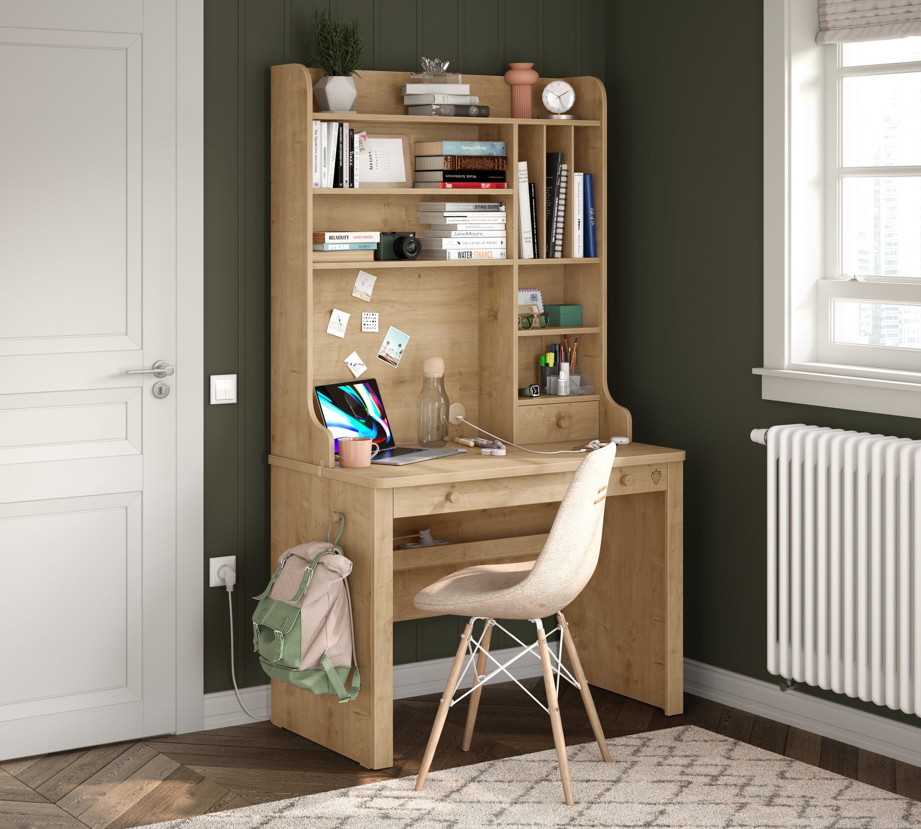 Mocha High-Unit radni sto dodaje stil i organizaciju vašoj sobi svojom prirodnom teksturom drveta i funkcionalnim dizajnom. Zahvaljujući policama i pretincima na vrhu, možete lako organizirati svoje knjige i stvari i uživati u udobnosti dok učite ili koristite računar zahvaljujući prostranom radnom prostoru. Njegova čvrsta konstrukcija čini ga idealnim izborom za godine pouzdane upotrebe.
